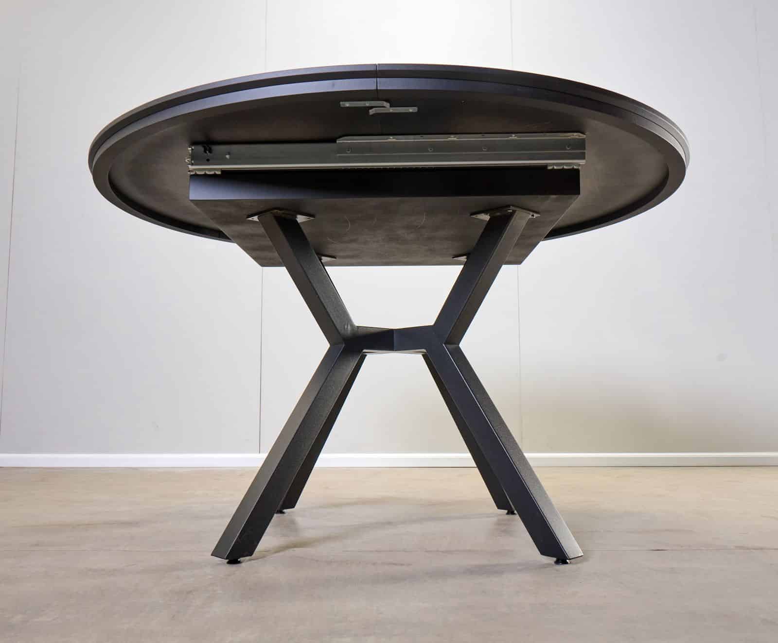 השולחן בקוטר 1.30 מ' בעל 2 הארכות של 50 ס"מ נוספים וקוטר מלא של 2.36 מ'.