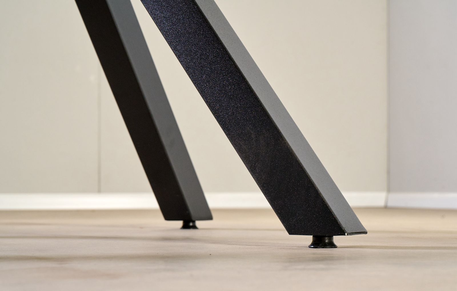 שולחן האוכל עשוי MDF בציפוי למינציה דמוי בטון, ורגלי השולחן עשויים ממתכת עם גימור צביעה אלקטרוסטטי נגד חלודה בצבע שחור.