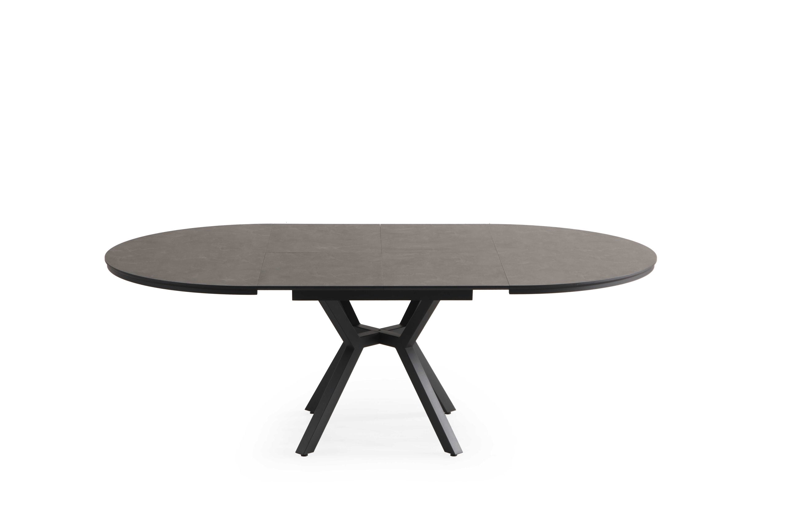 שולחן אוכל עגול נפתח דמוי בטון שחור דגם לונגו – 10 סועדים