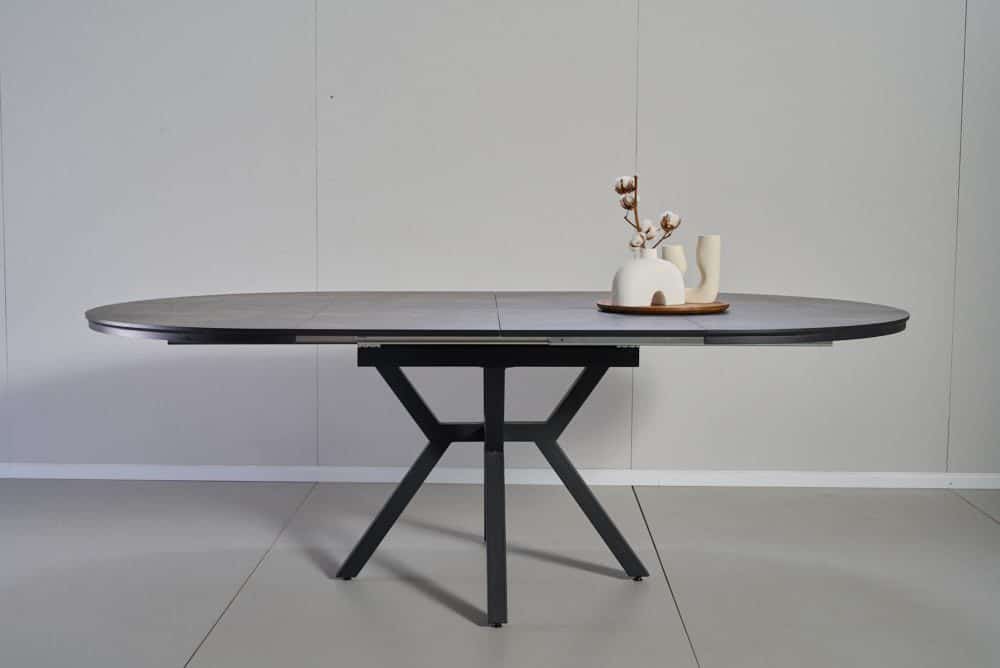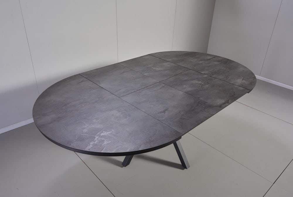 שולחן אוכל עגול נפתח דמוי שיש אפור דגם לונגו – 10 סועדים