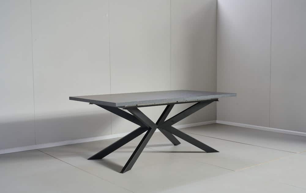 פינת האוכל כוללת שולחן המעוצב בקו איטלקי עדין, המשלב בין חומרים של מתכת שחורה אלגנטית ודמוי בטון המקנה לחלקי המתכת מראה אלגנטי ומונעת אפשרות של חלודה.