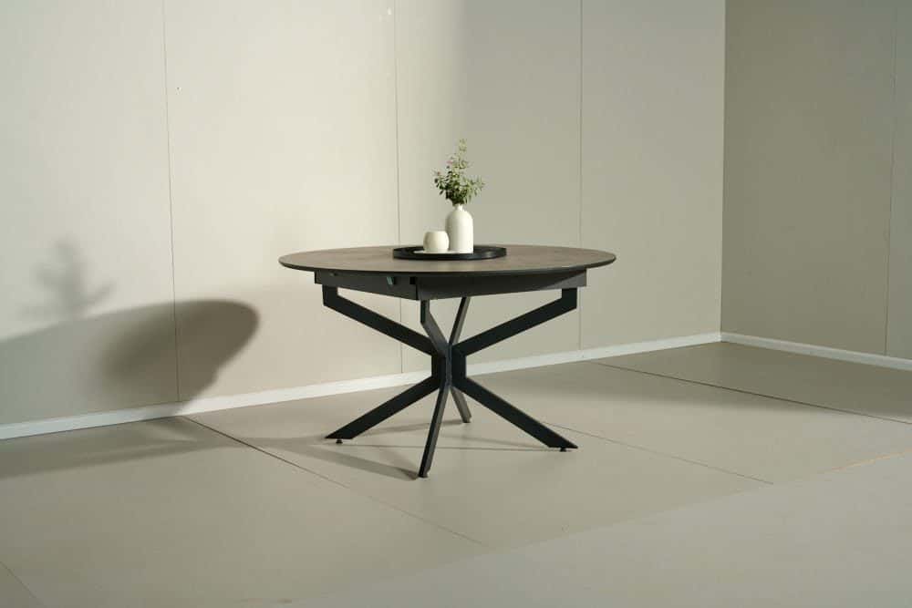 שולחן אוכל עגול נפתח דמוי בטון דגם לונה – 8 סועדים